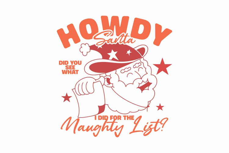 Funny Santa Shirt T-shirt Print Design Retro Sublimation File Naughty List Design Western Holiday Print Cowboy Santa Graphic Howdy Christmas Tee Jolly Santa Hat Christmas Question Quote Funny Seasonal Gift