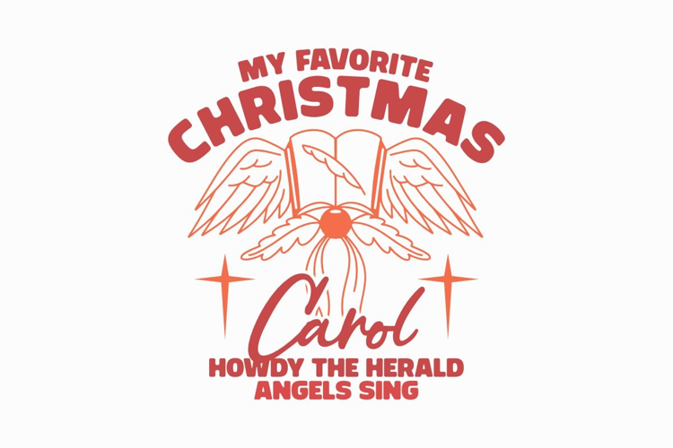 Merry T-shirt Christmas Angel Shirt Winter Holiday Graphic Funny Carol Pun Holiday Wings Graphic Religious Christmas Tee Herald Angels Pun My Favorite Carol Festive Singing Design Joyous Season Gift