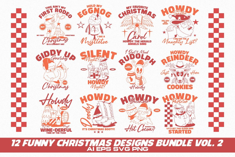 Funny Christmas Bundle Cricut Holiday Files Retro Christmas Humor Holiday Vector Bundle Western Print Design Cowboy Sublimation Files T-shirt Graphic Pack Cute Festive Sayings Winter Apparel Art Howdy Quote Print