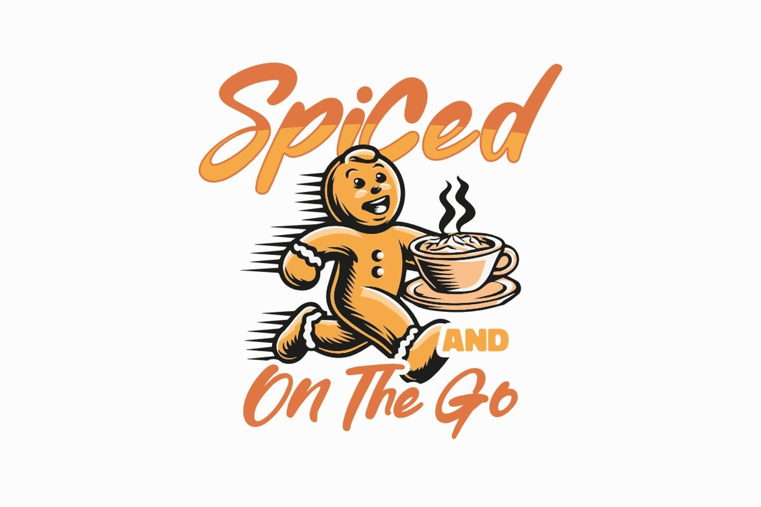 Winter Drink Illustration Sweet Treat T-shirt Festive Food Apparel Sublimation Print Artwork Gingerbread Coffee Sublimation Spiced Holiday Shirt Running Cookie Graphic Busy Christmas Tee Retro Gingerbread Design On The Go Gift