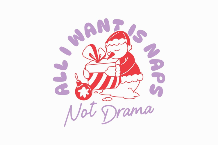 No Drama Quote Sublimation Print Design Lazy Day Shirt Funny Naps T-shirt Christmas Sleeping Quote Cricut Holiday Rest Tired Santa Vector Cozy Seasonal Apparel Humorous Christmas Graphic Festive Relaxation Design