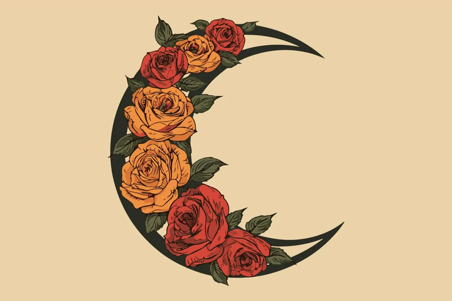 Blooming Celestial Roses Moon Cosmos Sky Night Petals Lunar Ethereal