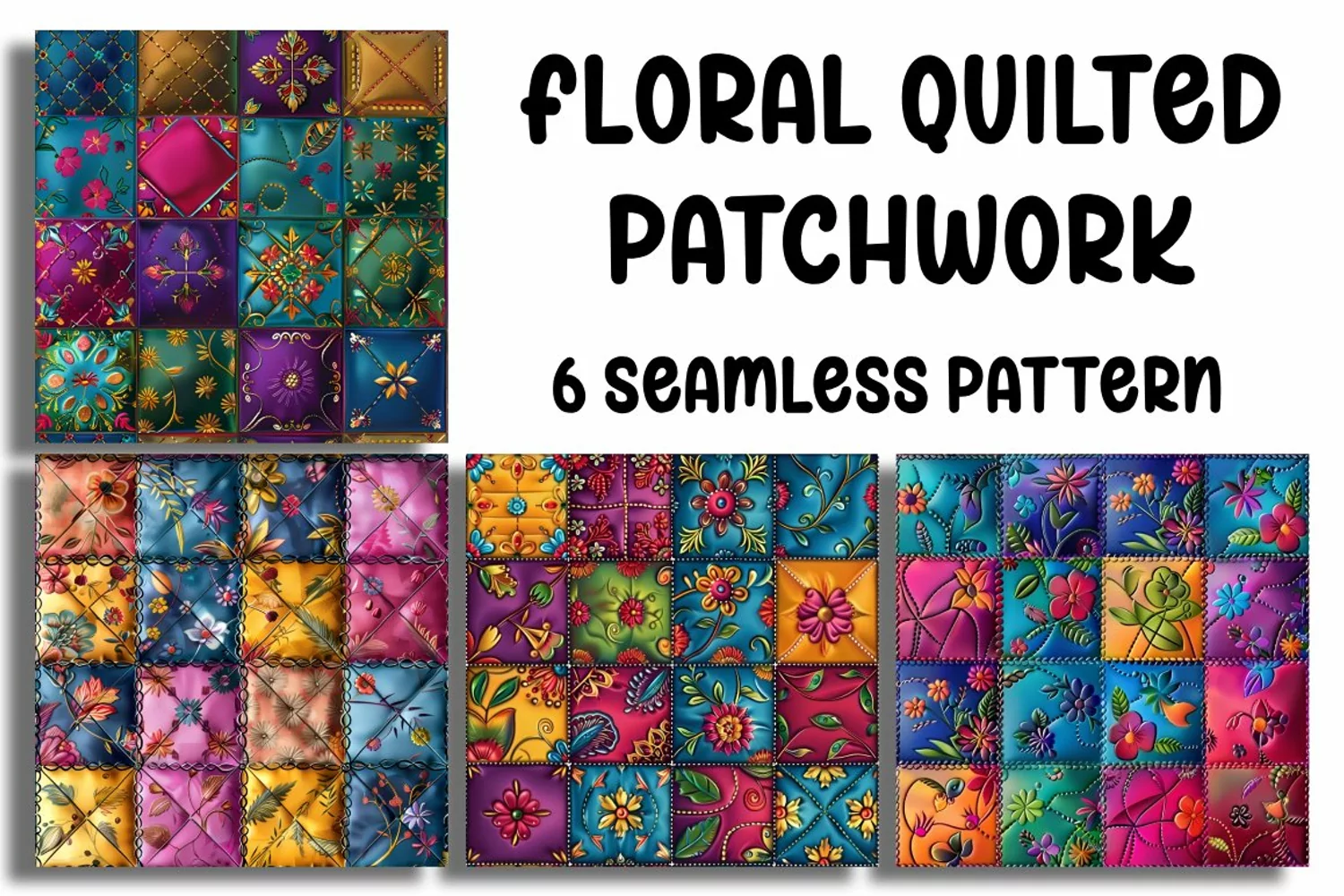 Indulge in the cozy charm of our "Floral Quilted Patchwork" seamless pattern. This delightful design features a collection of vibrant quilted squares adorned with intricate floral patterns, each with visible stitching details that add depth and texture. Reminiscent of a cherished handmade quilt, this pattern exudes warmth and nostalgia, perfect for adding a touch of whimsy to your projects. Whether you're crafting scrapbook pages, greeting cards, or textile prints, the cheerful appeal of our Floral Quilted Patchwork Seamless Pattern brings joy and comfort to any creation. Embrace the timeless beauty of quilting with this charming and versatile pattern