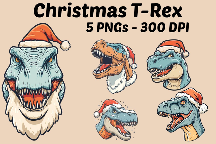 Awesome Christmas T-Rex Head Profile Bundle (5 PNG Files)
