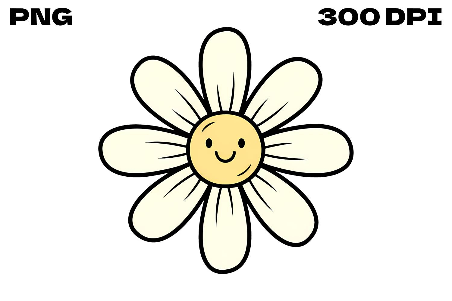 Happy Smiley Daisy Doodle - Hand-Drawn Retro Floral Clipart example image 1