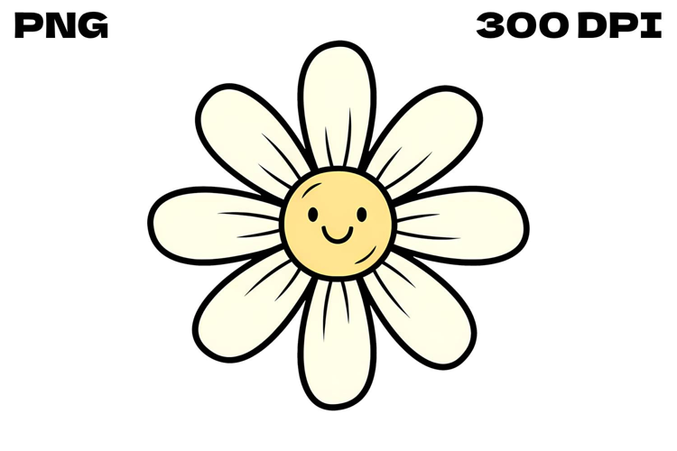 Happy Smiley Daisy Doodle - Hand-Drawn Retro Floral Clipart