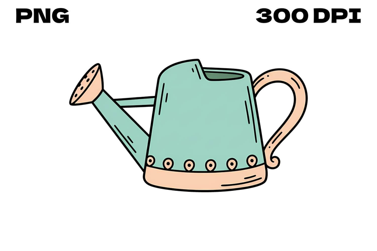 Perfect for green thumbs, this whimsical watering can doodle features a soft teal and peach palette. This hand-sketched 2D illustration is ideal for garden journals, flower shop branding, and spring-themed scrapbooking.