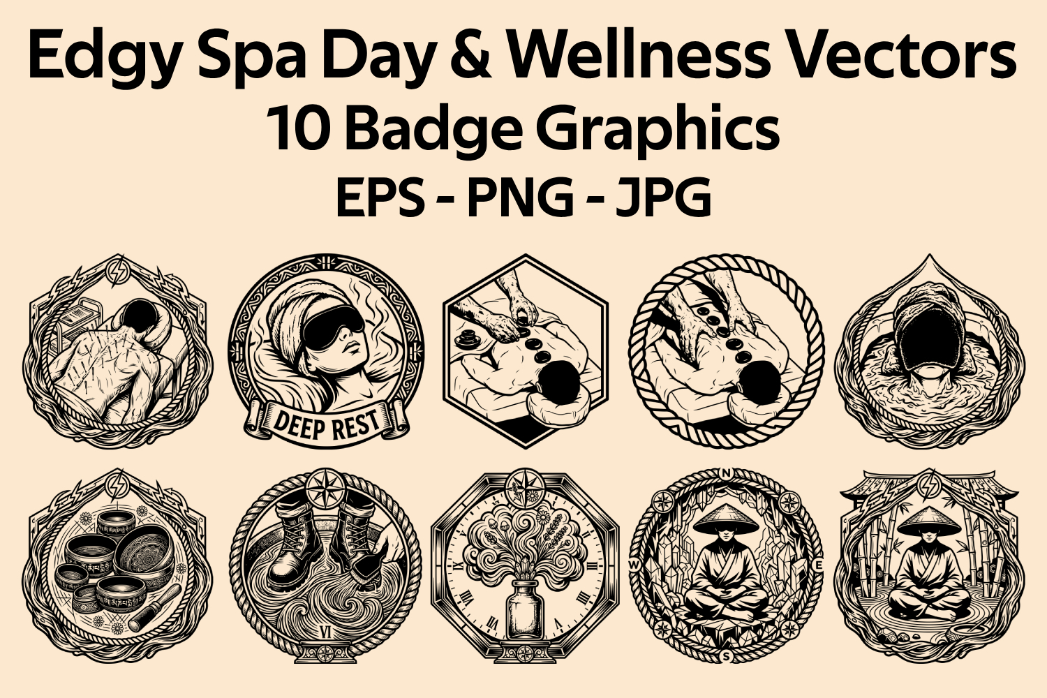 Edgy Spa Day & Wellness Vector Badge Bundle: 10 Graphics