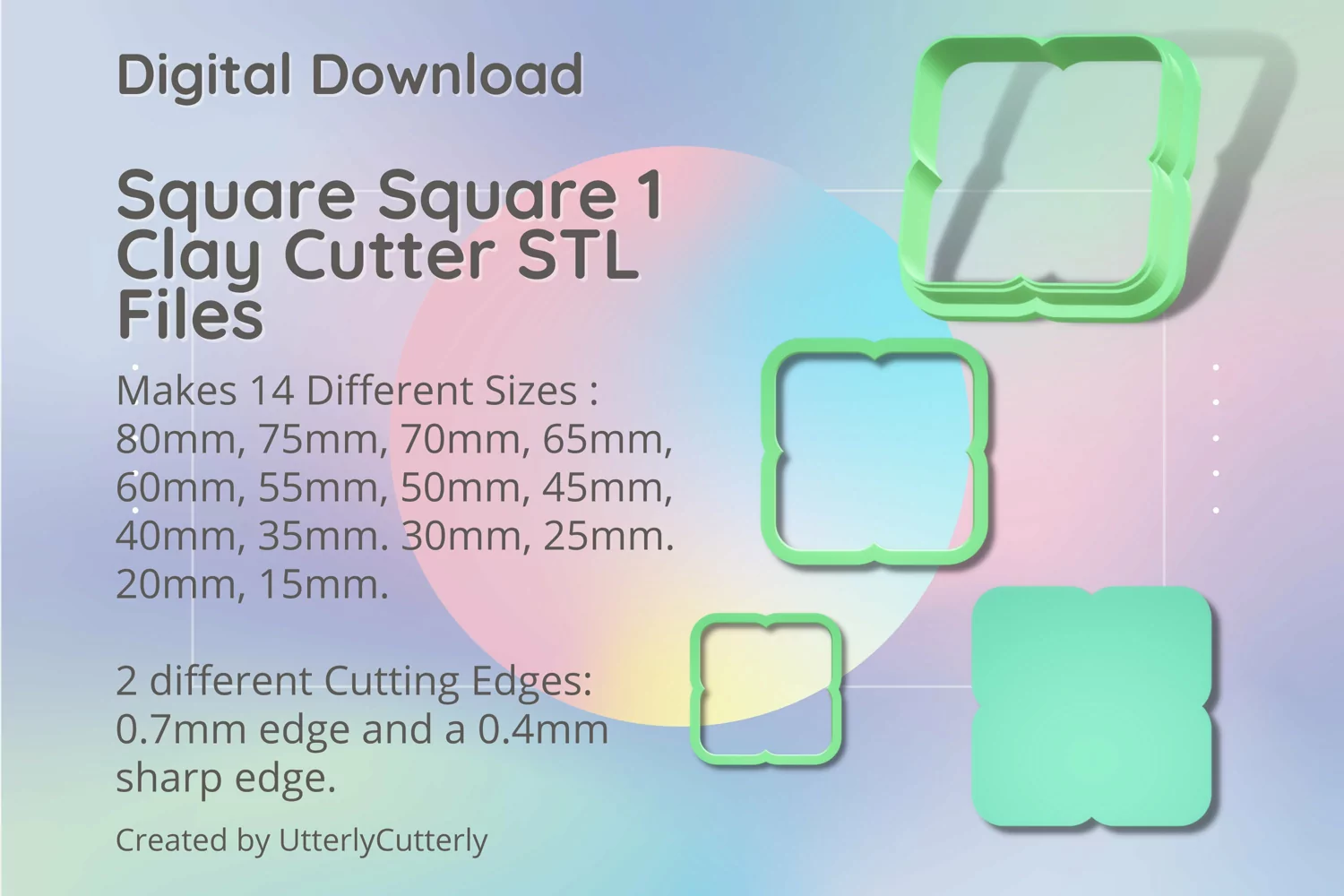 A bundle of square geometric clay cutters in a digital download STL file.