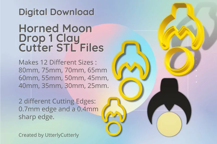 A bundle of horned moon earring clay cutters in a digital download STL file.