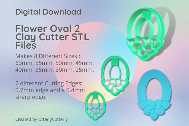 A bundle of flower oval clay cutters in a digital download STL file.
