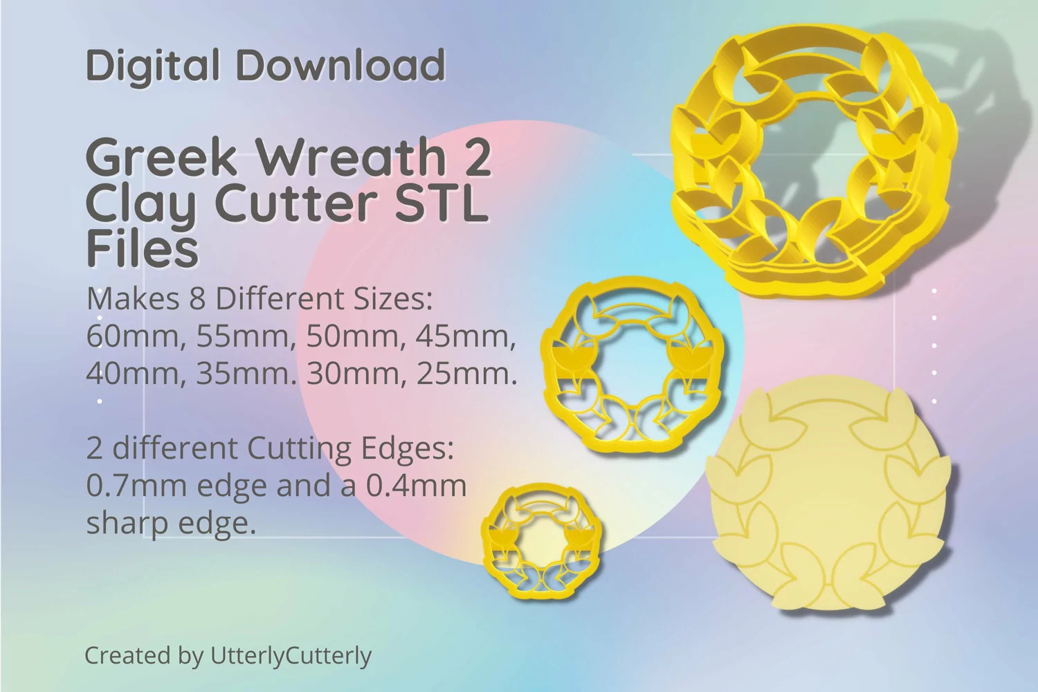 A bundle of greek wreath shape clay cutters in a digital download STL file.