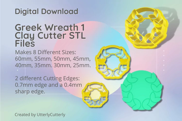 A bundle of greek wreath shape clay cutters in a digital download STL file.