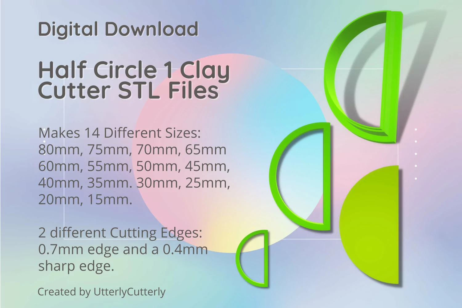 A bundle of half circle shape clay cutters in a digital download STL file.