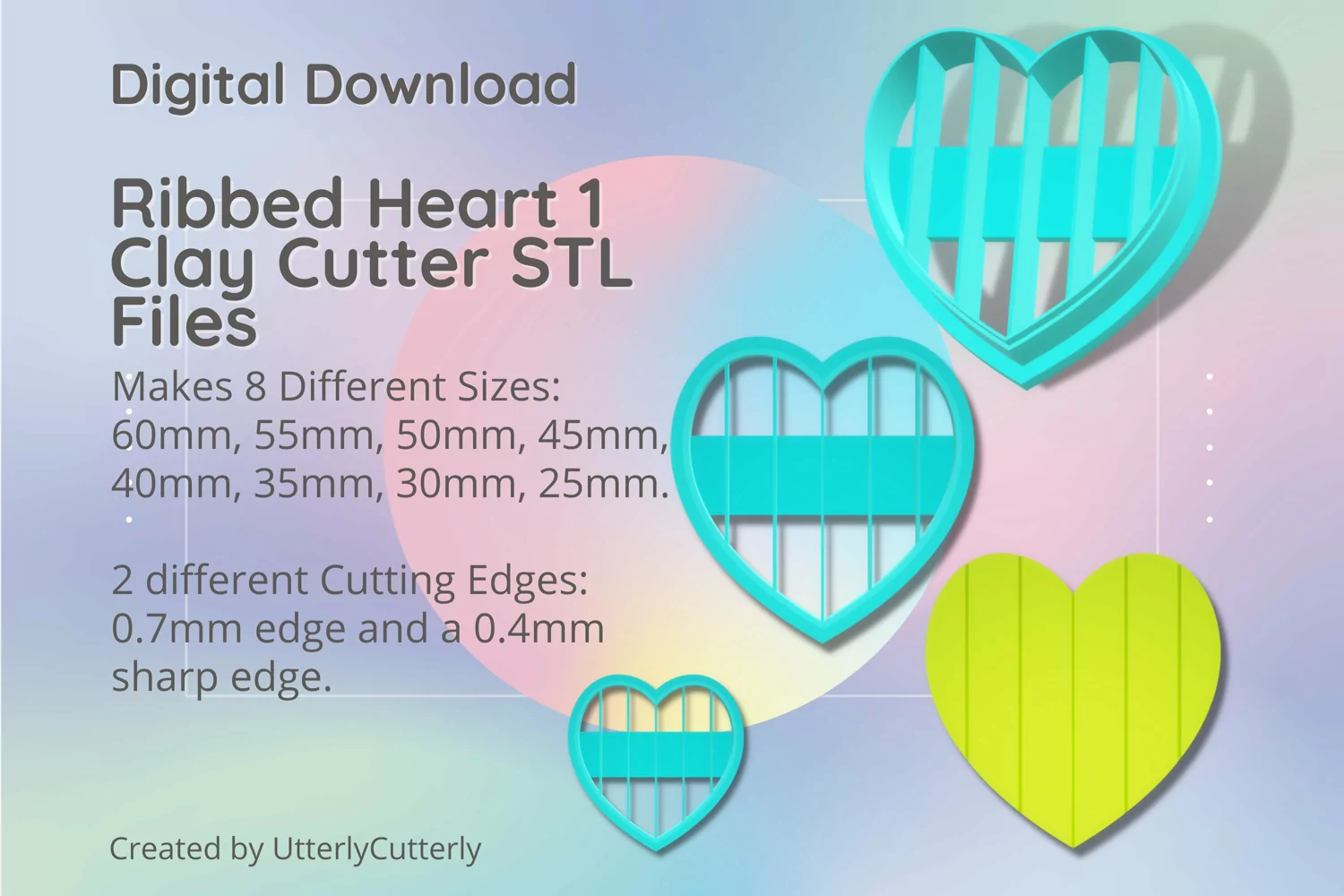 A bundle of ribbed heart shape clay cutters in a digital download STL file.