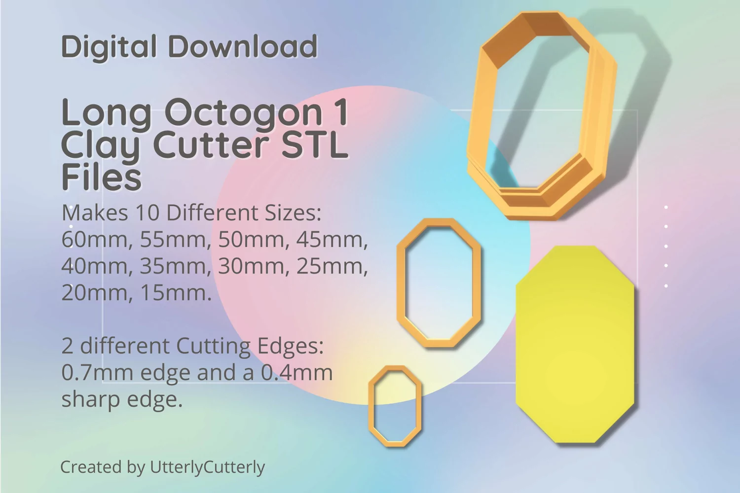 A bundle of long octogon shape clay cutters in a digital download STL file.