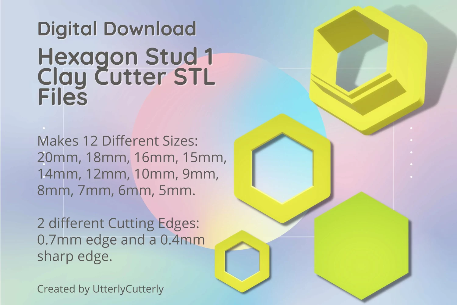 A bundle of stud micro size hexagon shape clay cutters in a digital download STL file.