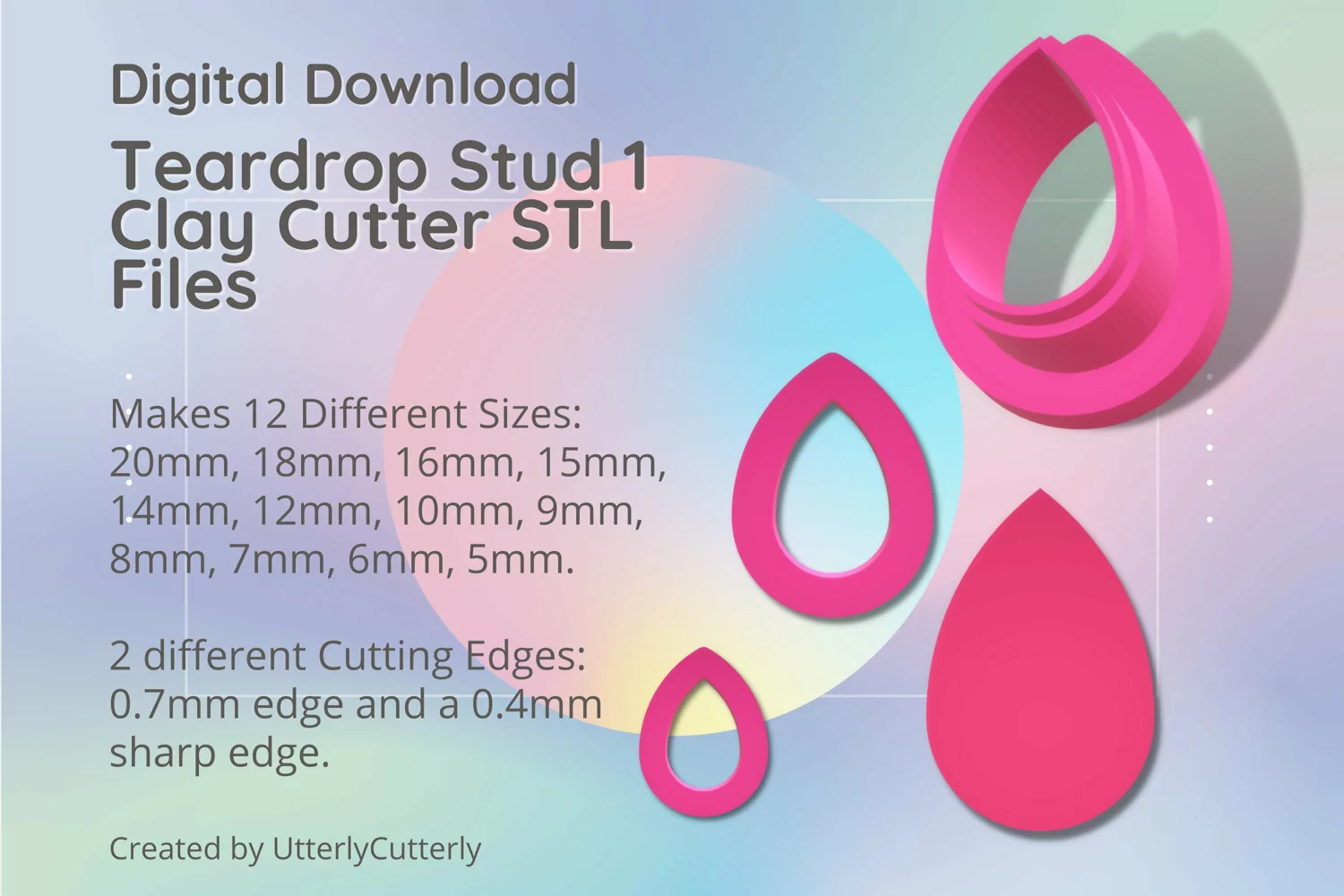 A bundle of stud micro size Teardrop Petal shape shape clay cutters in a digital download STL file.