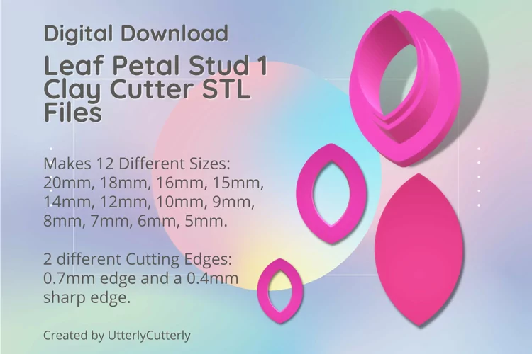A bundle of stud micro size leaf Petal shape shape clay cutters in a digital download STL file.