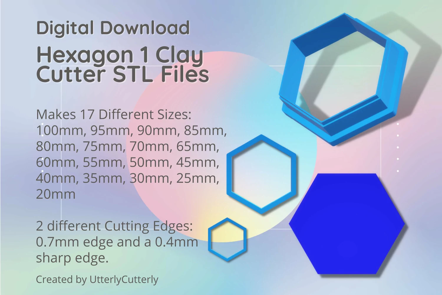 A bundle of hexagon shape clay cutters in a digital download STL file.