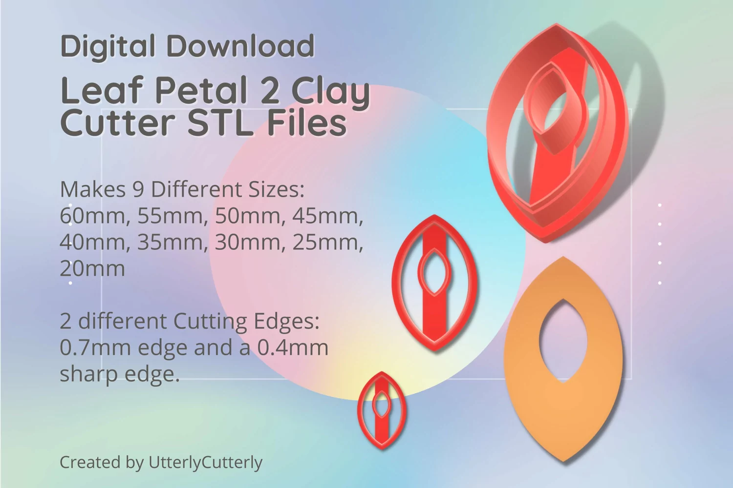 A bundle of leaf petal donut shape clay cutters in a digital download STL file.