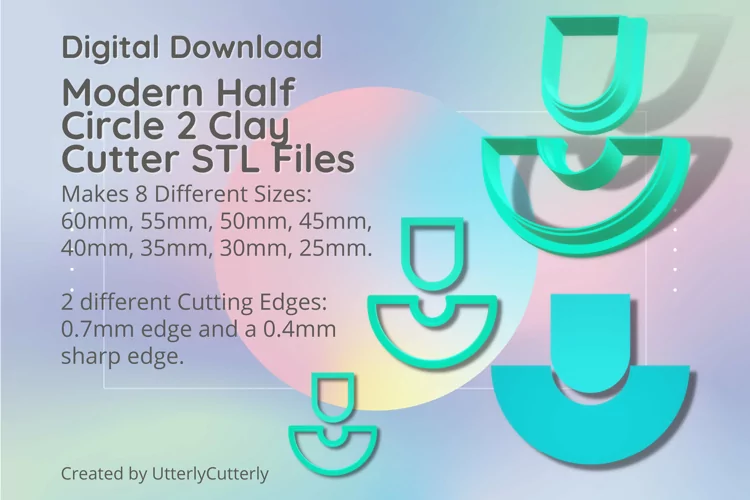 A bundle of modern circle shape clay cutters in a digital download STL file.