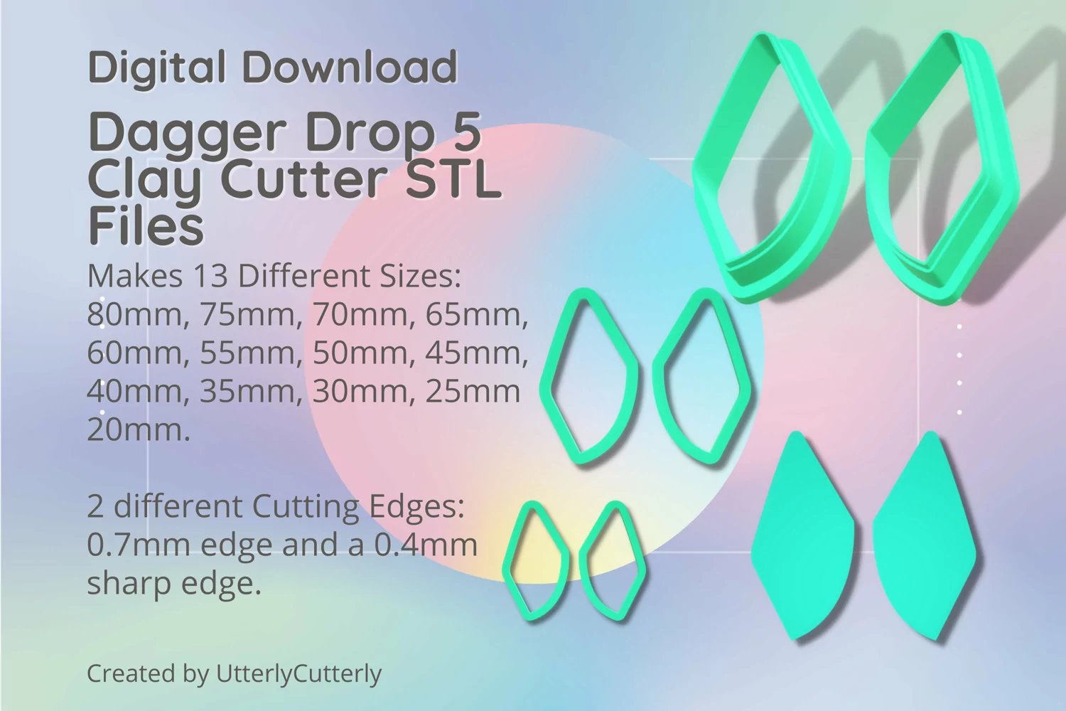 A bundle of modern dagger drop shape clay cutters in a digital download STL file.