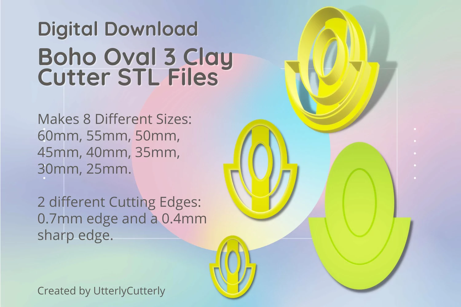 A bundle of boho oval shape clay cutters in a digital download STL file.