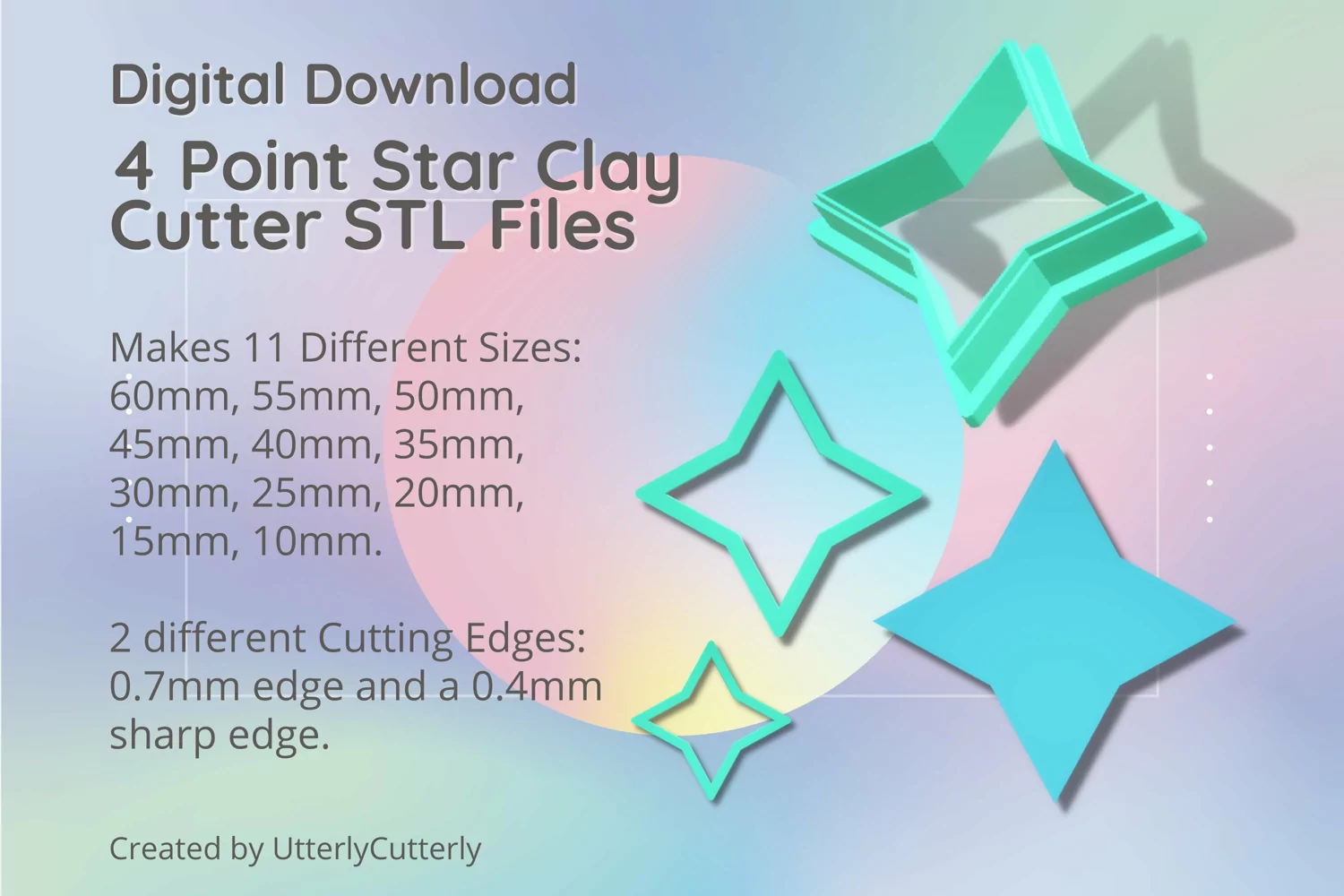 A bundle of 4 point star shape clay cutters in a digital download STL file.