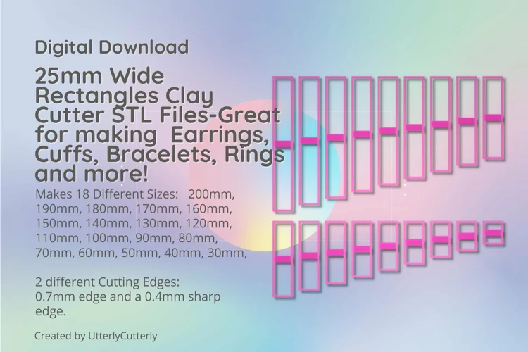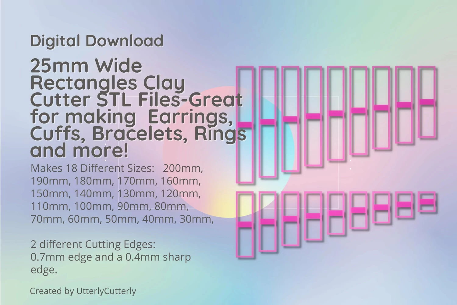A bundle of 25mm wide rectangle clay cutters in a digital download STL file.