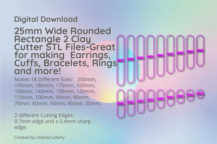 A bundle of 25mm wide rectangle clay cutters in a digital download STL file.