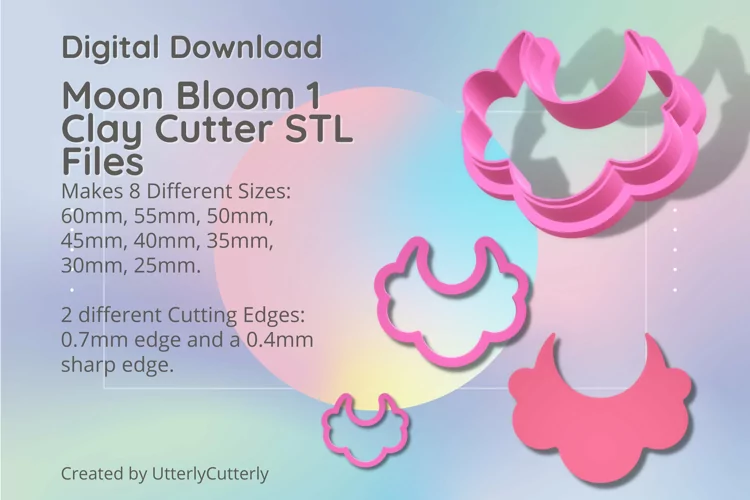 A bundle of moon bloom shape clay cutters in a digital download STL file.