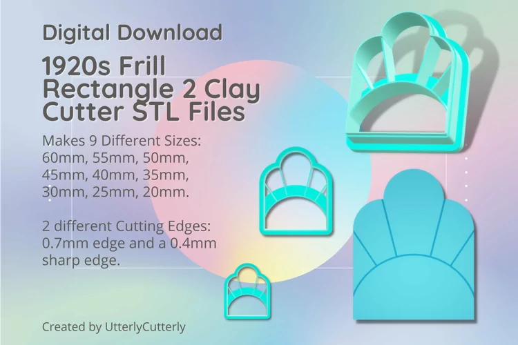A bundle of 1920s Frill Rectangle clay cutters in a digital download STL file.