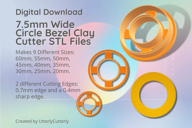 A bundle of 7.5mm circle bezel clay cutters in a digital download STL file.