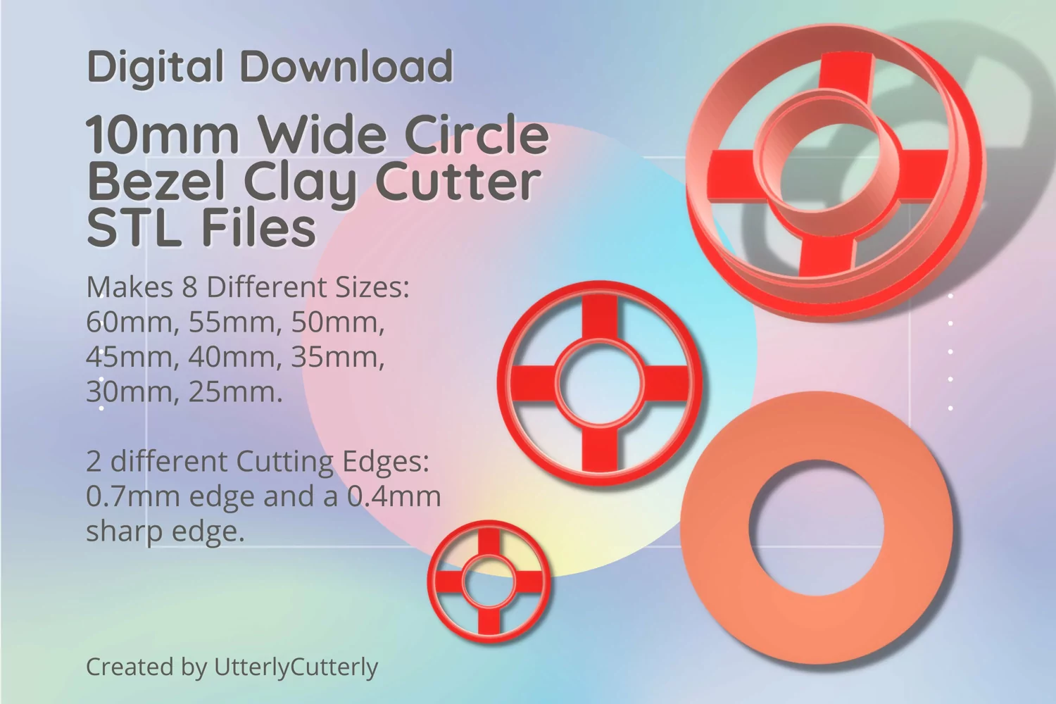 A bundle of 10mm circle bezel clay cutters in a digital download STL file.
