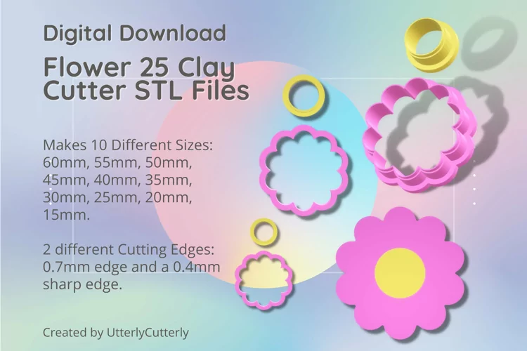 A bundle of flower frill clay cutters in a digital download STL file.