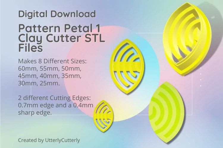 A bundle of pattern petal clay cutters in a digital download STL file.