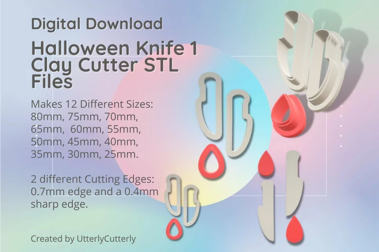 A bundle of halloween knife clay cutters in a digital download STL file.