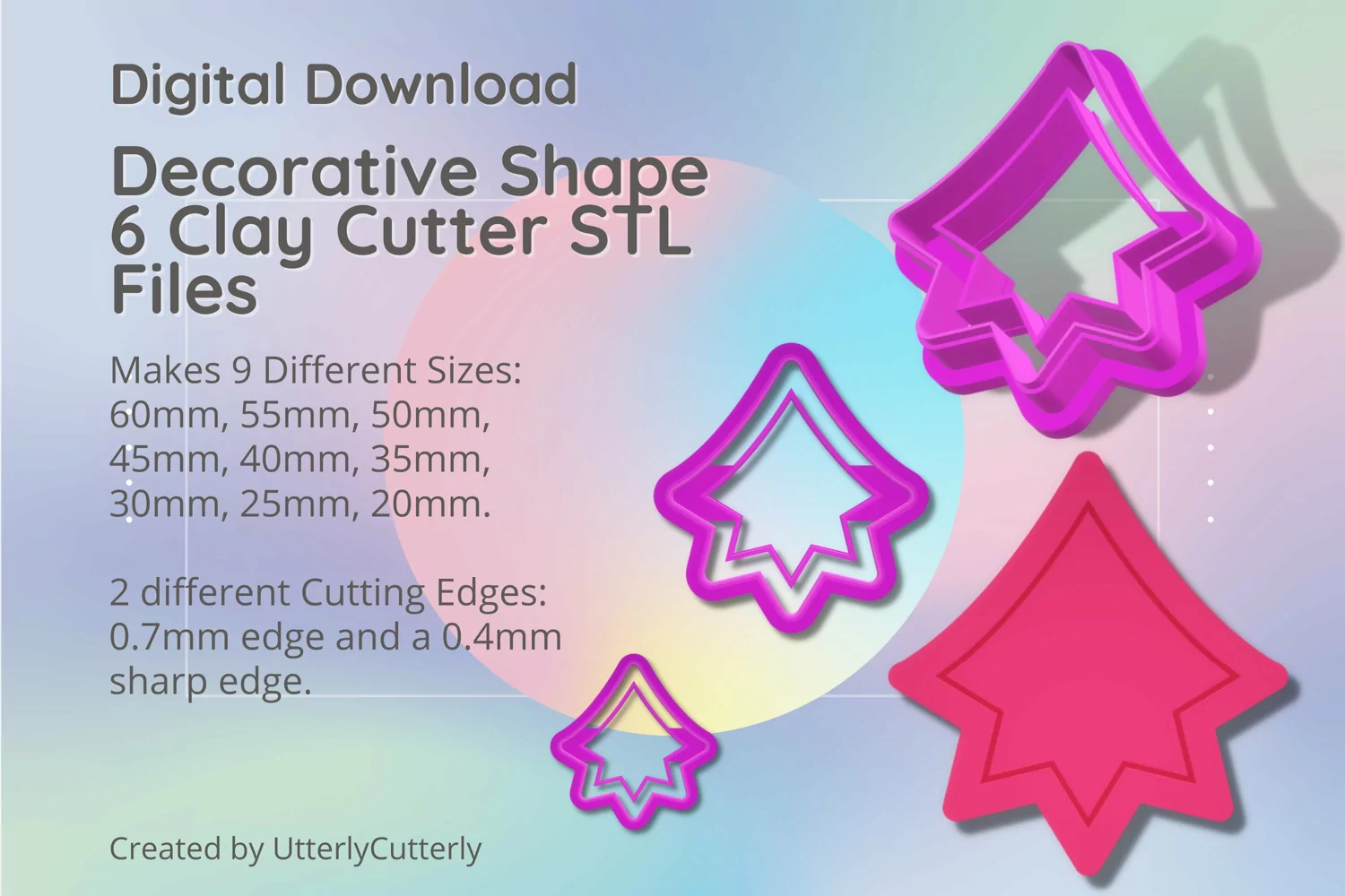 A bundle of vintage shape inspired shape clay cutters in a digital download STL file.