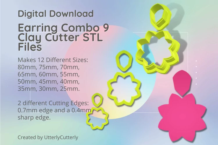 A bundle of flower Earring Combo earring clay cutters in a digital download STL file.