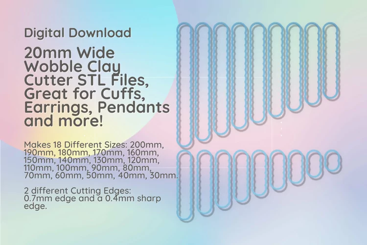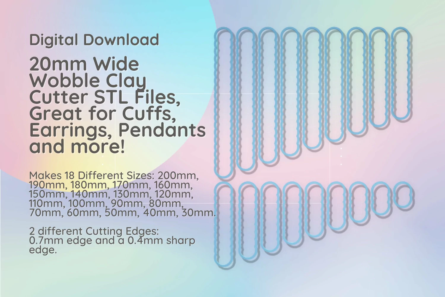 A bundle of 20mm wide wobble cuff clay cutters in a digital download STL file.