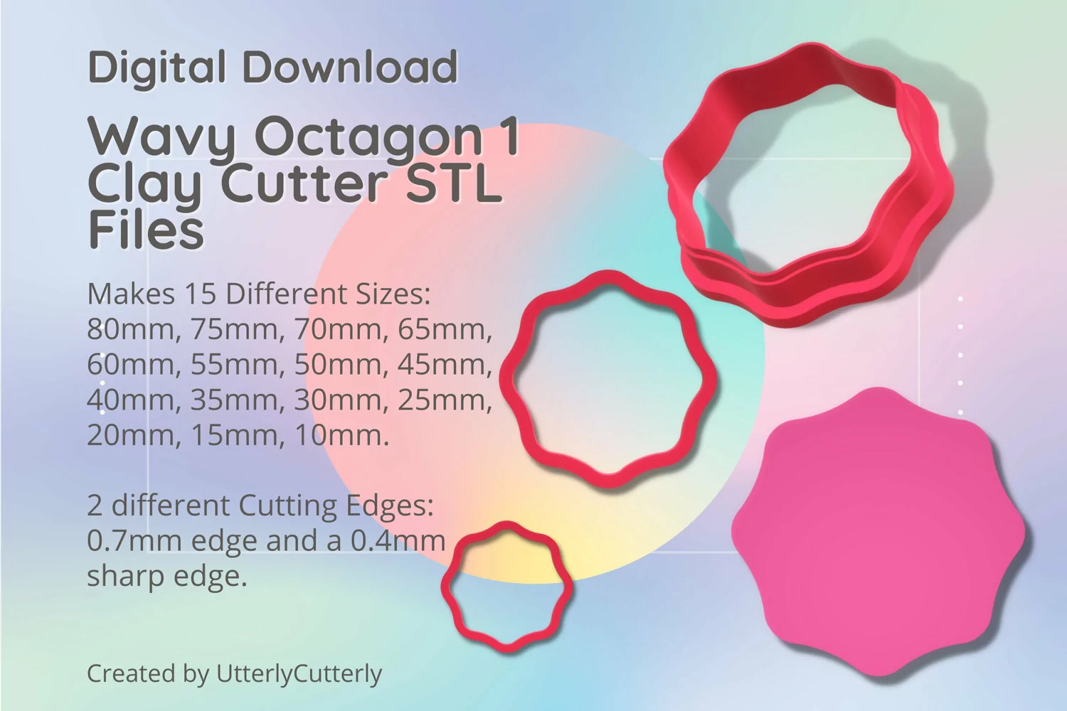 A bundle of wavy organic octagon Earring Combo earring clay cutters in a digital download STL file.