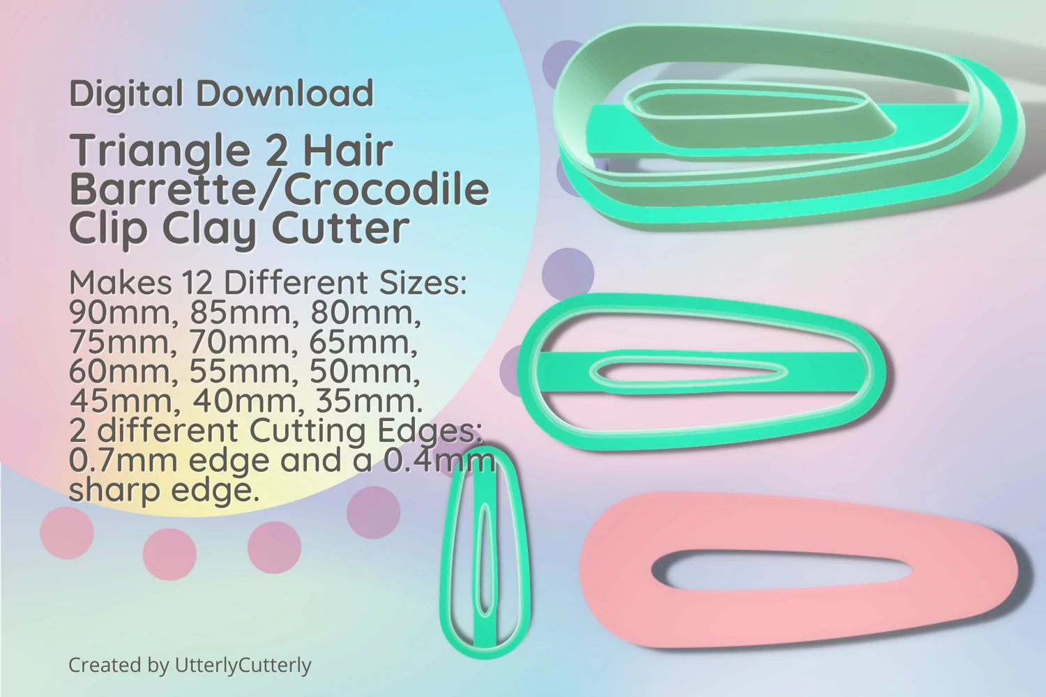 A bundle of triangle hair barrette crocodile clip clay cutters in a digital download STL file. Perfect for making Earrings, Cuffs, Bracelets, Rings cookies cutters, fondant decorations and more.