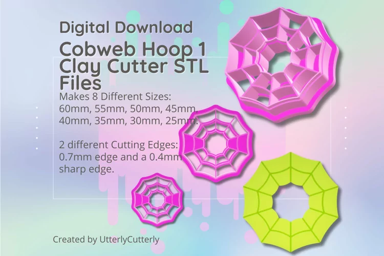 A bundle of statement cobweb hoop Earring Combo earring clay cutters in a digital download STL file.