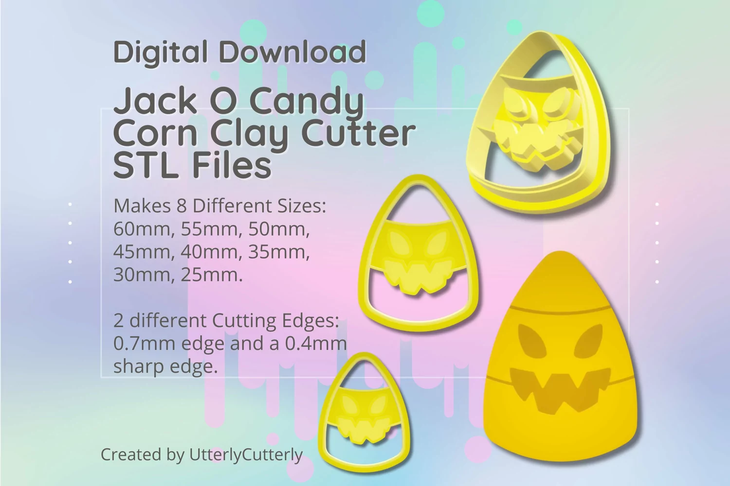 A bundle of halloween candy corn clay cutters in a digital download STL file. Perfect for making earrings, pendant, barrettes, cookies, fondant decorations