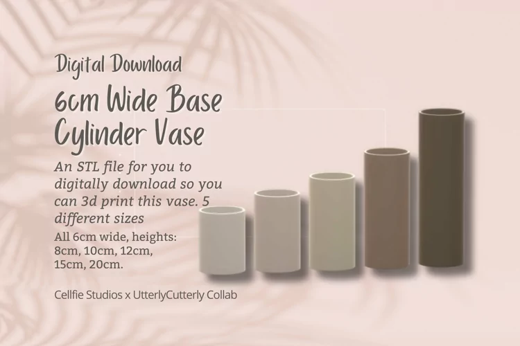 A digital download of a 3d minimalistic cylinder style vase planter style pot stl file for you to print at home. This modern container is a sleek addition to any interior, whether it be your work desk, living area, bathroom or bedroom. A great gift for your home or for a loved one or for you to sell physical prints of. Great for storing pens, tools, make up brushes etc.