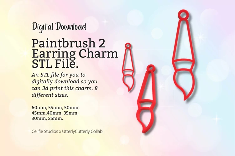 Similar Design Products to Paintbrush Earring 2 Charm STL File - Digital Download -8 Si