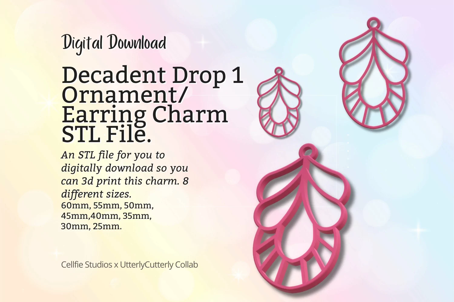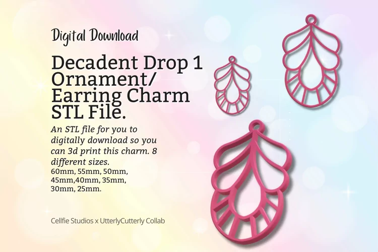 Similar Design Products to Decadent Drop 1 Earring Charm STL File - Digital Download -8