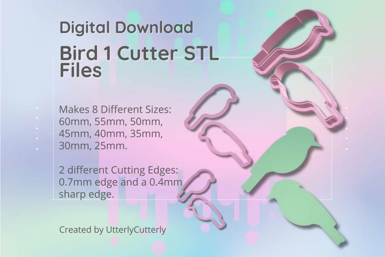 A bundle of bird clay cutters in a digital download STL file. Perfect for making earrings, pendant, barrettes, cookies, fondant, christmas decorations as gifts for you or loved ones.