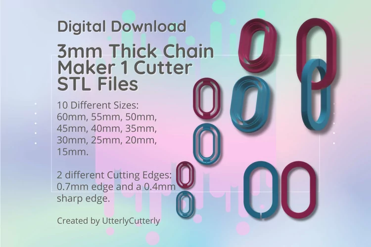 A bundle of 3mm thick chain cutter clay cutters in a digital download STL file. Perfect for making earrings, pendant, barrettes, cookies, fondant, christmas decorations as gifts for you or loved ones.